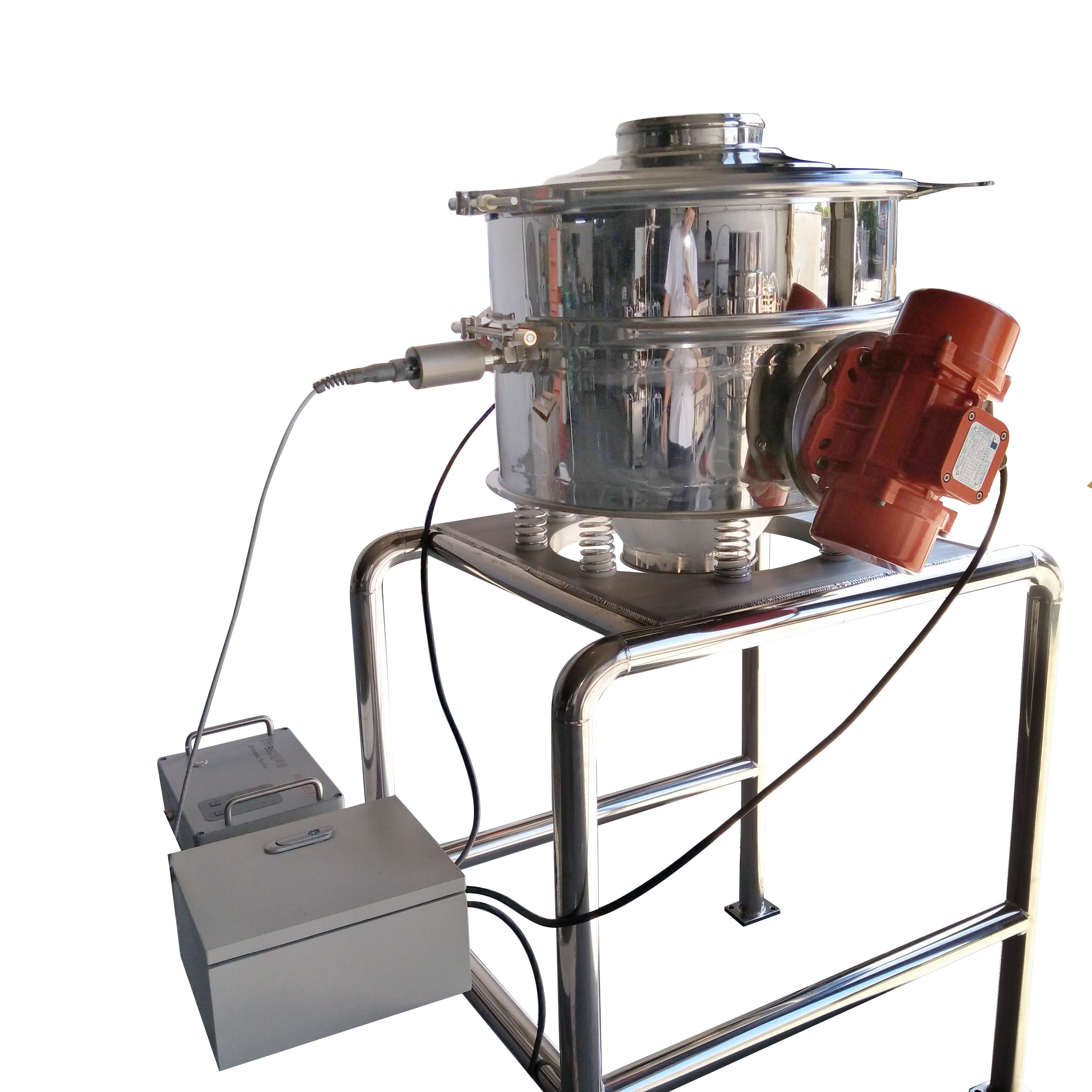 超聲波直排式振動篩也叫超聲波直排振動篩,分單振源和雙振源兩種,它是在圓振動篩分機的功能基礎上改進的,它是利用兩臺振動電機作為振動源,物料從中間進入投料口,通過篩分,直接從底部中間出料口排出,適用干受安裝條件的限制或大批量連續(xù)作業(yè)。滿足各種不同比重物料的好的篩分效果。主要用于粉體生產(chǎn)線工藝流程中的粉體的除雜,篩松作用。疊加上超聲波振動,即可防止網(wǎng)孔堵塞,又可提高篩分產(chǎn)量。